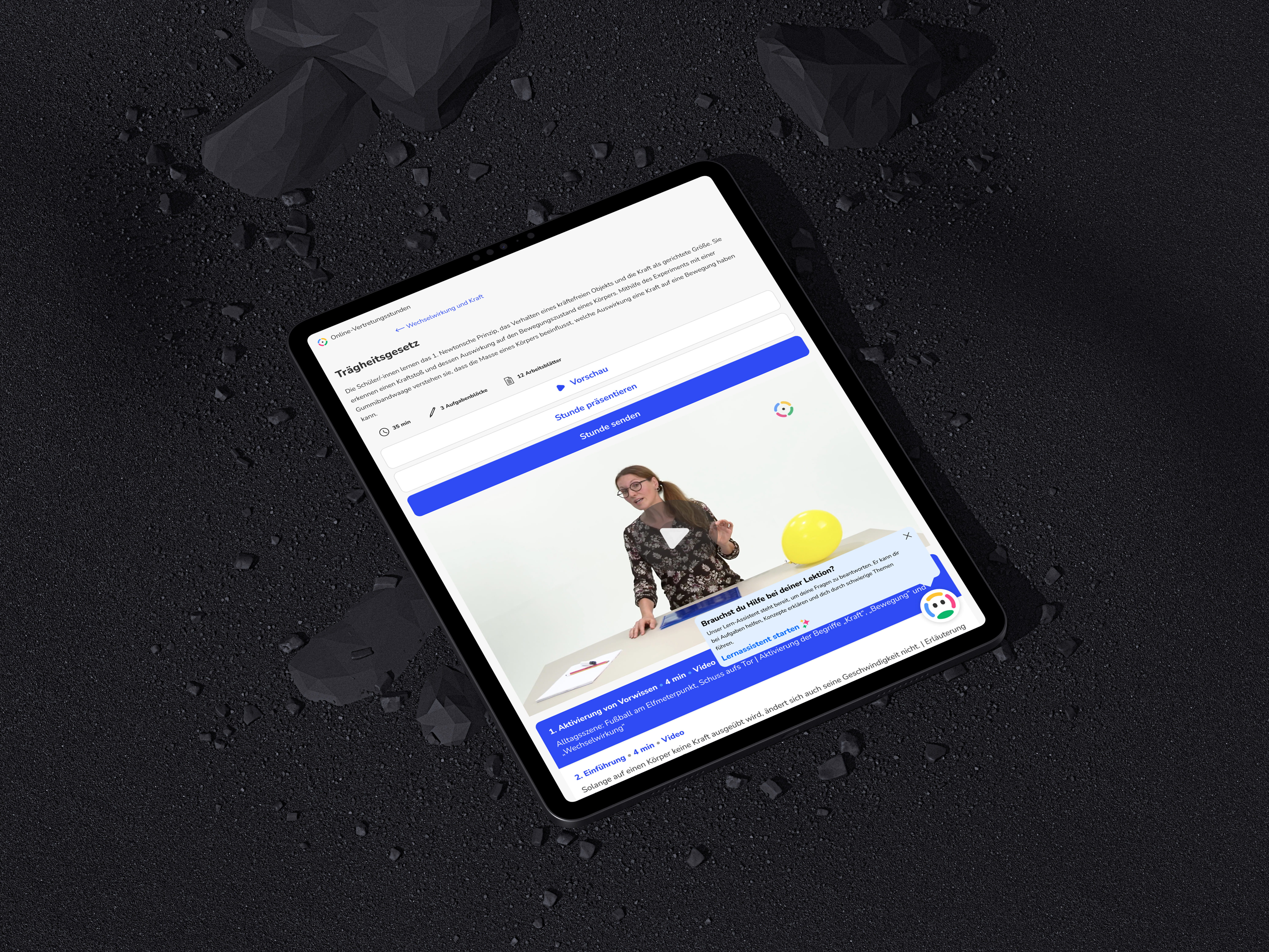 Konzeption und Implementierung eines einheitlichen Stundenaufbaus aus Lehrvideos und interaktiven Aufgaben, sodass vollwertige Unterrichtsstunden entstehen.